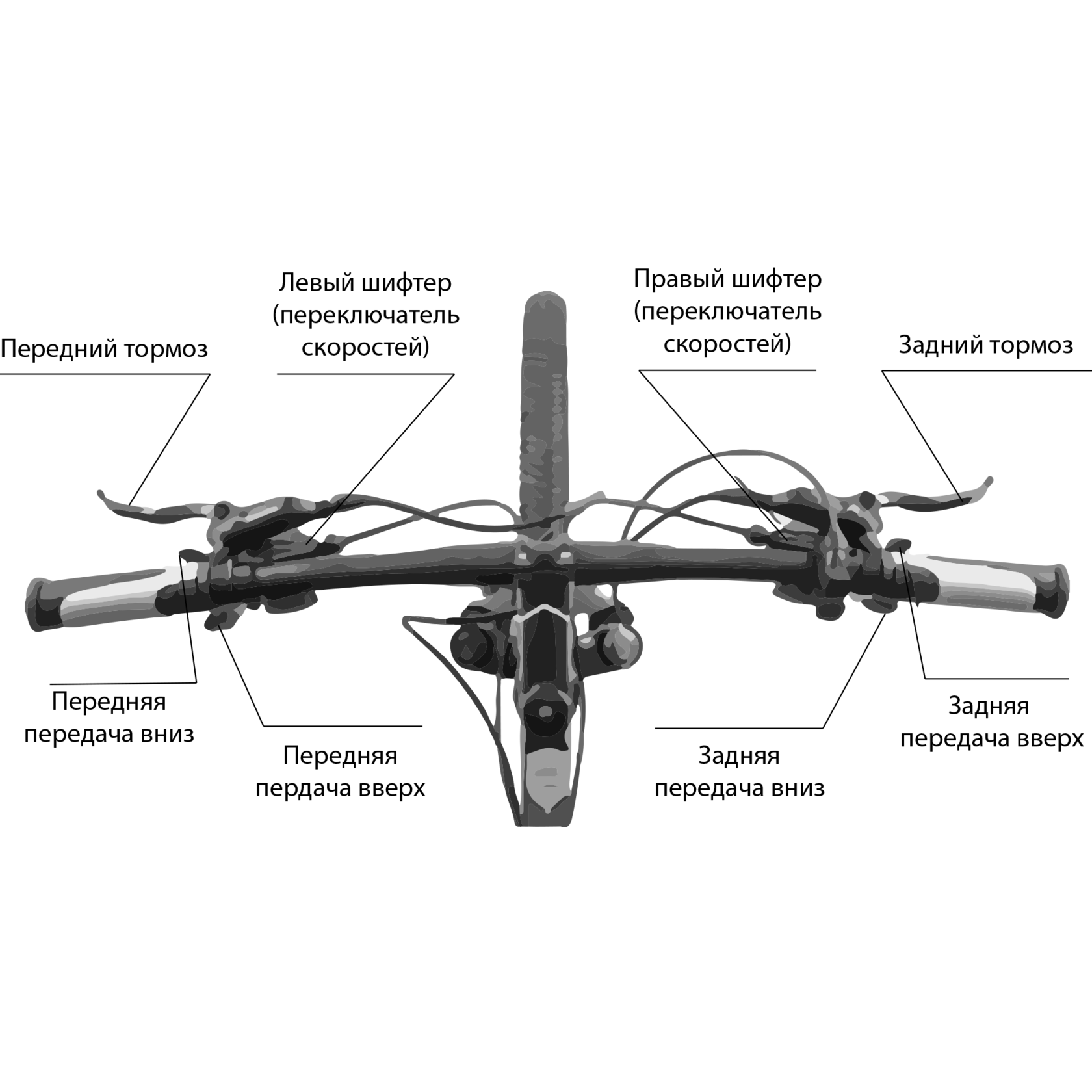 Переключение скоростей осуществляется нажатием на соответствующие рычаги шифтеров (смотри рисунок ниже)